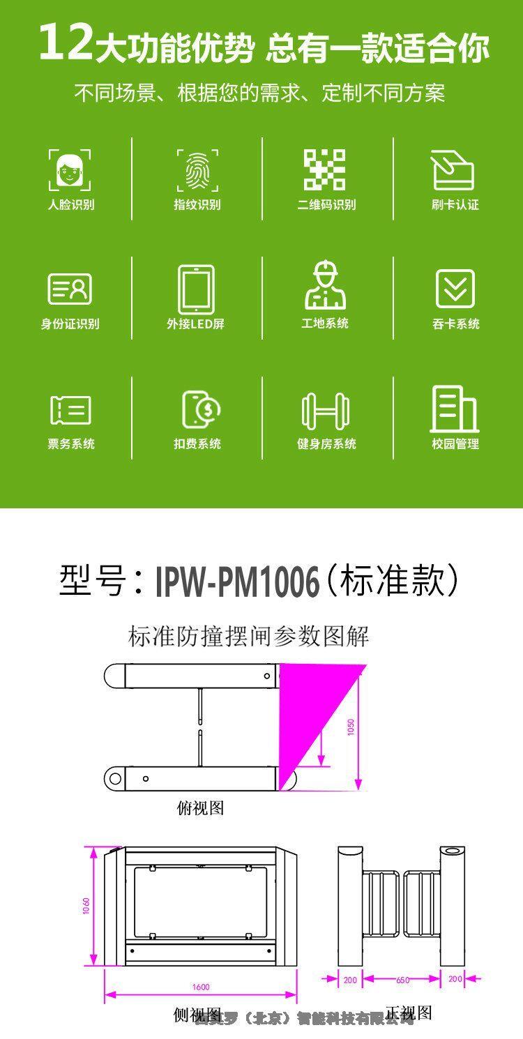 这个工业防撞摆闸和以前的人车共用室外摆闸IPW-PM1002一样是双机芯设计结构,箱体不用加宽,即可满足要求。