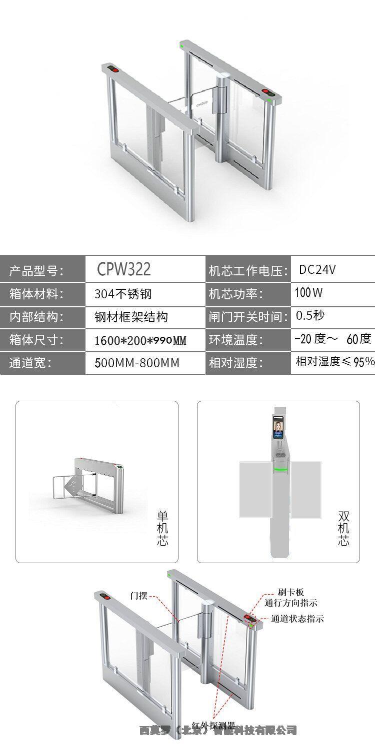 西莫罗办公楼大厦门禁系统摆闸CPW175Y,是目前行业内较薄的摆闸之一。CPW-175Y采用桥式结构,通透明亮、简约大方;箱体框架采用304或316不锈钢+冷轧板喷涂,经久耐用;机芯的驱动模块采用工业级直流无刷伺服电机和伺服矢量控制技术,确保门摆开关平稳、快速、准确,低功耗,节能环保。