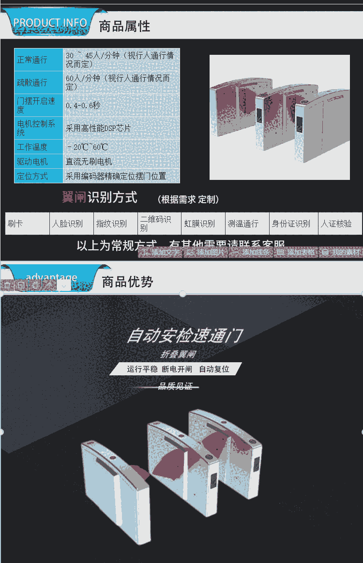 样式:翼闸 | 出入方向:单向 |