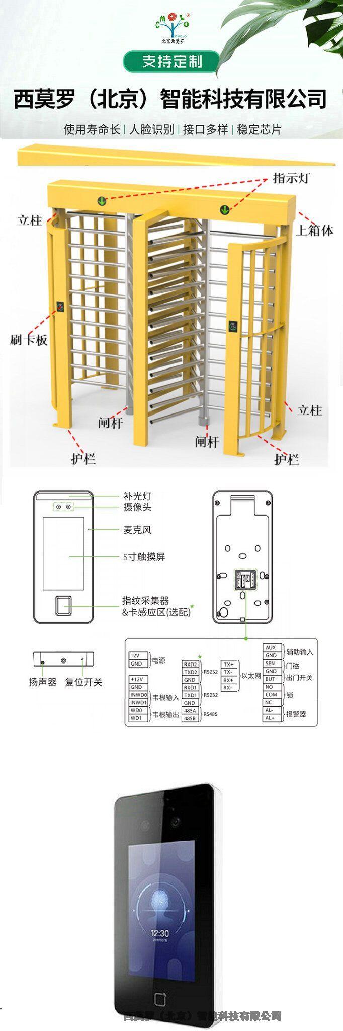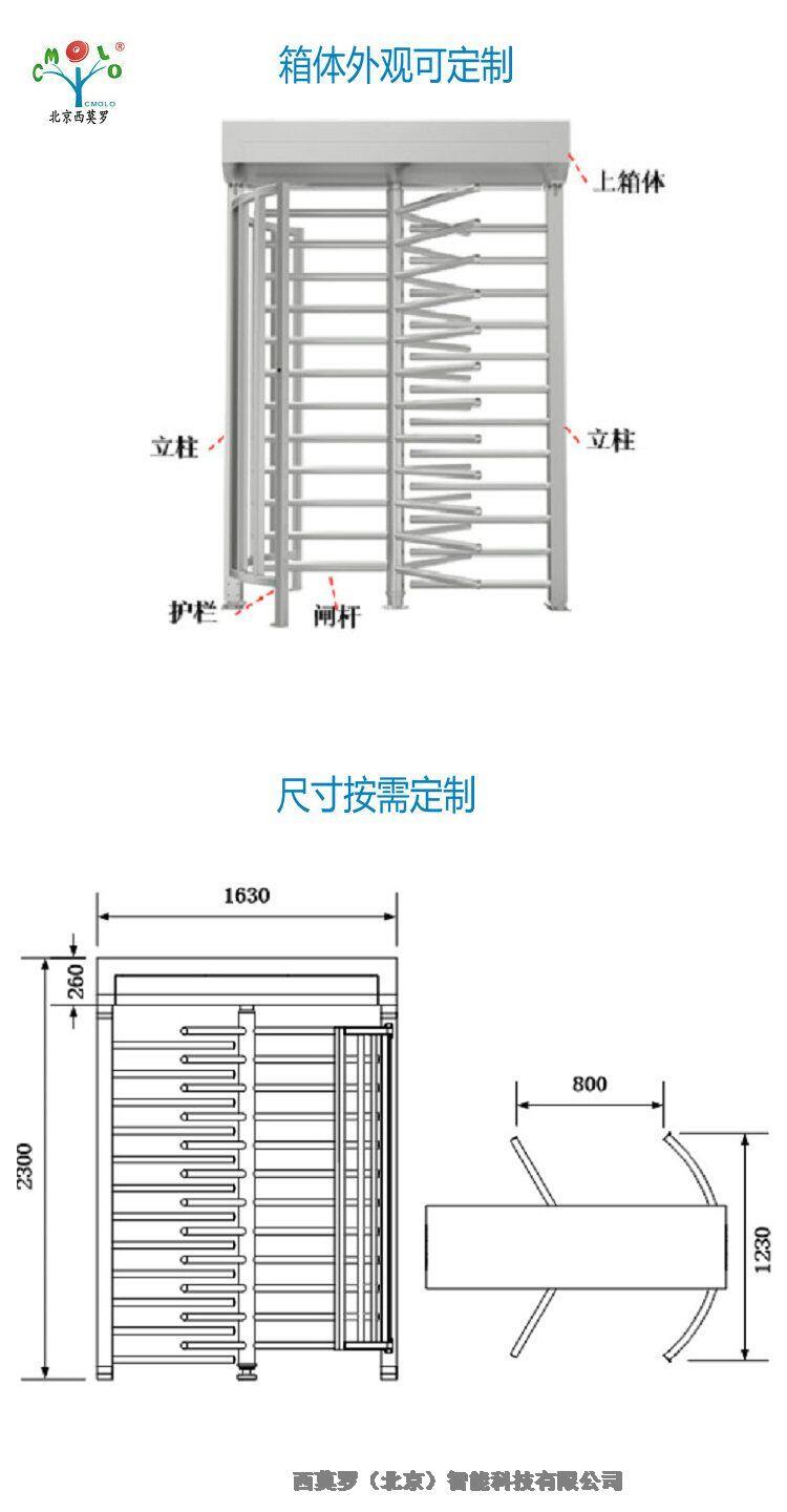 单通道全高旋转闸机通常由垂直旋转的转轴、旋转臂和门板等组成,具备防撞功能,能够准确判断物体的尺寸和形状,从而避免行人与闸门发生碰撞。此外,它还采用了先进的检测技术,如红外线传感器和人体感应器,能够准确地判断行人的进出方向和速度,并根据实际情况控制闸门的开关。