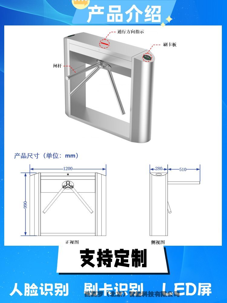 智能刷卡三辊闸通道门禁系统生产厂家北京西莫罗为智慧小区、工地、景区、展览馆等场景提供各种三辊闸门禁解决方案。